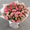 Нежные соцветия этого букета из 15 розовых кустовых Роз, несомненно произведут восторг, и подарят праздничное настроение на весь день.